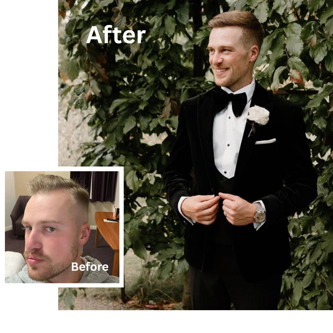 After considering it for 18 months I am so glad I did it. I got married in August 2024 and have an absolutely immaculate, natural looking hairline that made me on the day and every day 100X more confident." - Alex